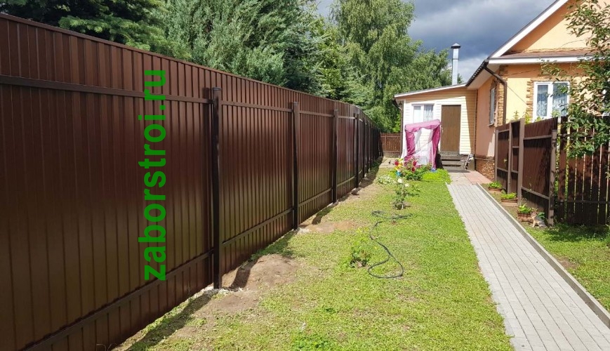 Рассмотрите, пожалуйста, готовый вариант забора из профлиста с металлической планкой под ключ в Наро-Фоминске. Ниже в таблице представлены характеристики, комплектация и цена.
